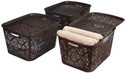 Amazon Brand – Solimo Royal Multipurpose Storage Basket With Lid- Large (Set Of 3, Brown) – Fabric, Rectangular