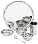 - Package contents: 1 dinner plate, 2 prem vatis, 1 halwa plate, 1 Amrapali glass, 1 baby spoon