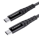 Ambrane Unbreakable 60W Fast Charging 1.5M Braided Type C to Type C Cable for Smartphones, Tablets, Laptops & Other Type C Devices, PD Technology, 480Mbps Data Sync (RCTT15, Black)