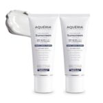 Aqueria Brightening & Moisturizing Multi-Active French Sunscreen SPF 50 PA++++ | In-Vivo/In-Vitro Tested | 5% Niacinamide, 5 Ceramides & Vitamin E | Modern UV Filters | Broad Spectrum UVA/UVB & Blue Light Protection | Lightweight, No White Cast, Sweat Resistant | Suitable for Daily Use | For Normal, Dry & Sensitive Skin | Pack of 2 (30g)
