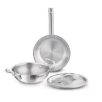 Bergner Tripro Triply Stainless Steel 3 Pc Cookware Set, 24 cm Indian Wok/Kadai with Lid, 22 cm Frypan Without Lid, Fast and Event Heating, Induction Bottom, Gas Ready, Silver