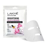 Lakme Skin Solutions Sheet Mask Brightening with Niacinamide 25ml is available on Amazon at best discounted online price. Original price of this product is ₹ 150. You can buy this product at discounted rate ₹ 67.